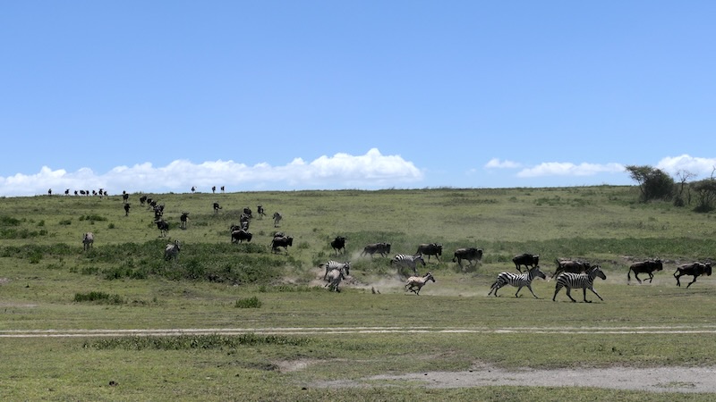 Zudem bringen in der Kalbungszeit zwischen Januar und März Hunderttausende Gnus, Zebras und Gazellen ihre Jungen zur Welt, was nicht nur ein faszinierendes Naturschauspiel ist, sondern auch viele Raubtiere wie Löwen, Leoparden, Geparden und Hyänen anzieht. Die hohe Konzentration von Tieren macht Ndutu in dieser Zeit zu einem der besten Orte, um das Zusammenspiel von Beute und Raubtier zu beobachten.