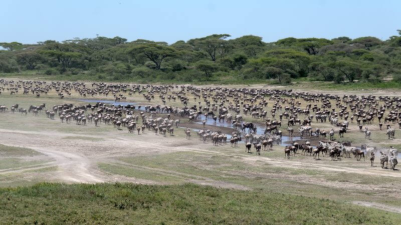 Die temporären Seen und das frische Weideland ziehen die riesigen Herden in dieser Zeit an.