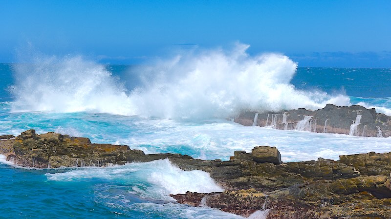 Knysna: Fahr zum Aussichtspunkt an den Knysna Heads (East Head). Der Blick auf die tosende Brandung in der Laguneneinfahrt ist unbezahlbar. Probier danach unbedingt die berühmten Austern an der Waterfront.