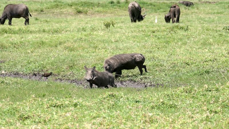 Eine Savanne mit Zebras, Giraffen und Warzenschweinen und weiter im Arusha NP  gibt es auch Elefanten, Kaffernbüffeln, Wasserböcken, Flamingos, Affen und viele andere Tiere. Der Arusha NP, ein Kleinod gleich zum Start in eine große Safari. Ein Stück unberührte Natur.