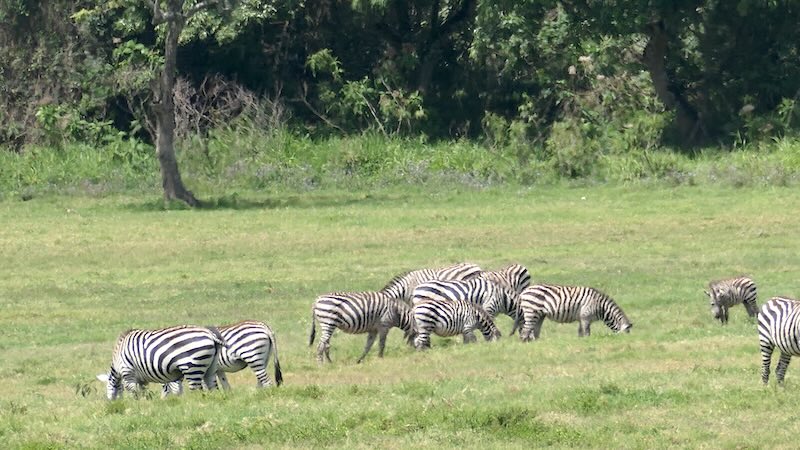 Auf der gesamten Lichtung waren sie nun alle gemeinsam so friedlich am Grasen. Kaffernbüffel, Warzenschweine, Zebras und auch Giraffen. Ein Farbenspiel inmitten dem satten Grün. Grau, grau bis Schwarz, braun-weißes Fleckenmuster und die weiß-schwarzen Streifenmuster. Grau für die Warzenschweine, grau-schwarz für die Büffel, braun-weiß für die Giraffen und weiß-schwarz für die Zebras. Unsere ersten Stunden hier in Afrika, in Arusha und wir sind überwältigt von der Natur. Und ach ja, neben diesen vielen Farben immer wieder ein weißer Tupfer von den vielen, vielen Kuhreihern.