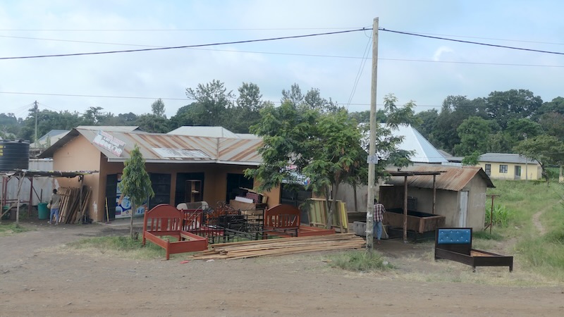 In jeder noch so kleinen Stadt wird das Straßenbild ganz besonders durch die vielen, ich sage mal, Verkaufsstände geprägt. Es wird einfach alles angeboten, ob Obst und Gemüse, ob selbst gefertigte Möbel, ob Kleidung jeglicher Art. Ob in festen Verkaufshütten, ob auf Tischen oder auf Decken ausgebreitet. Jeder hat hier irgendwie seinen Platz gefunden und will seine Waren an die Frau oder den Mann bringen. Dann gehören auch die vielen Tiere, Rinder, Ziegen, Schafe und Hunde zum Straßenbild. Rinder, welche angebunden sind, Ziegen, welche nach dem letzten Grashalm suchen und Massai, ob Groß und Klein, gehören natürlich auch dazu.