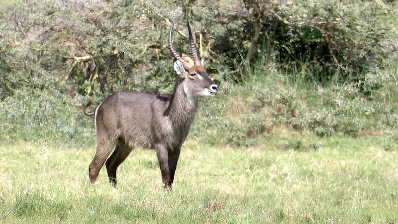 Bereits beim ersten Pirschgang im Arusha National Park hatten wir imposante Wasserböcke gesehen. Wir waren mit einem Ranger zu Fuß unterwegs und die Tiere standen nicht weit von uns weg. Als sie uns sahen blieben sie stehen uns beäugten uns ganz genau und auch wir blieben stehen und schauten zurück.