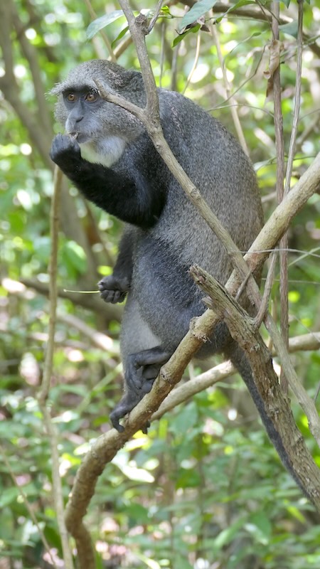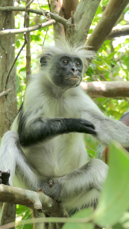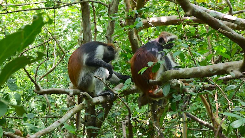 Neben den Sansibar-Stummelaffen gibt es auch Sykes-Meerkatzen und Grüne Meerkatzen.