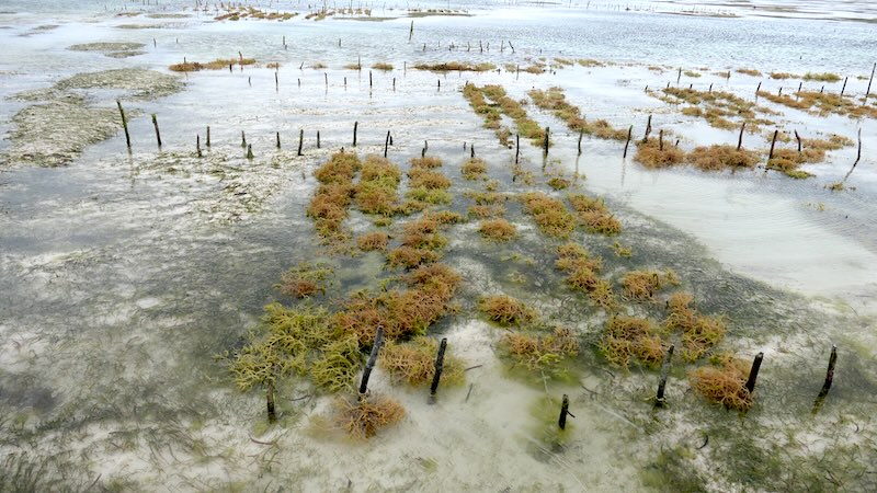 Hier können traditionelle Seegrasfarmen bei Ebbe besichtigt werden.