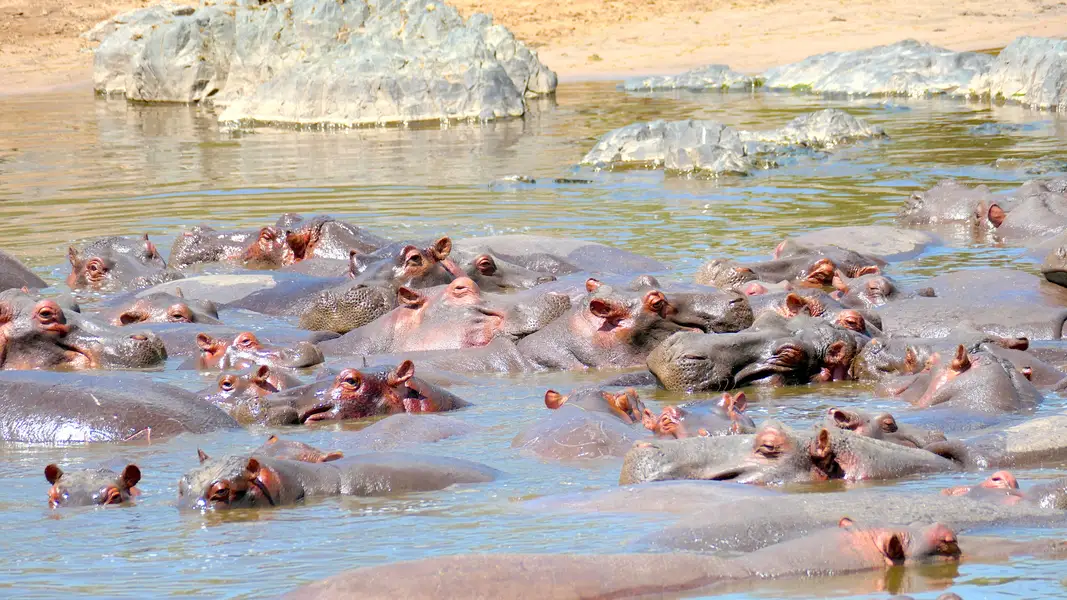 Ein Erlebnis für alle Sinne erwartet dich am Retima Hippo Pool. Hier versammeln sich hunderte Nilpferde in einer Biegung des Flusses, um gemeinsam im Schlamm zu baden. Das laute Schnauben, die spielerischen Kämpfe der Bullen und das ständige Geplapper der Vögel machen diesen Ort zu einem lebendigen Highlight.