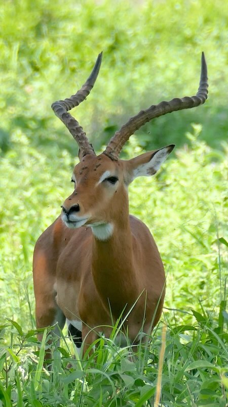 Am Anfang des Weges hatten wir ein paar männliche Impalas beobachten können. Diese stattlichen männlichen Impalas haben ein imposantes Geweih und ich dachte, das ist das Besondere. Aber weit gefehlt – da ist noch sehr viel mehr. Alle Impalas haben eine besondere Zeichnung am Hinterteil. „Dieses Hinterteil erfüllt so viele Zwecke“ meinte Elly. Die Färbung lässt, so wie ein Fähnchen, alle Tiere beisammenhalten. Der Schwanz dient als Frühwarnsystem.