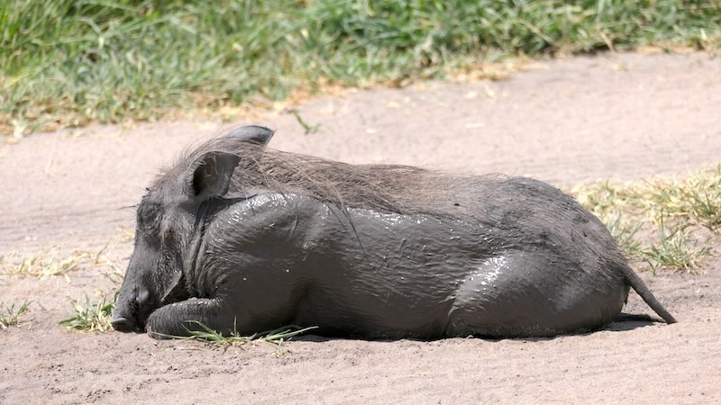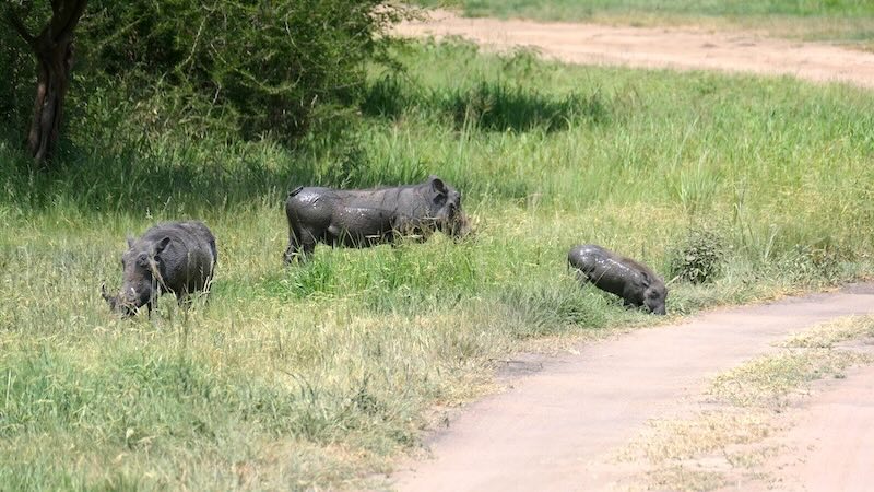 Irgendwo auf dem Weg hoch zur Tarangire Safari Lodge gibt es wohl noch ein kleines Wasserloch. Denn unsere letzten Begleiter hoch zur Lodge waren viele Warzenschweine. Und diese Warzenschweine waren mit Dreck besudelt und waren total matschig. Auch wenn Warzenschweine bestimmt von vielen Touristen nicht so gewürdigt werden sind sie hier mehr als wichtig. Dienen die Warzenschweine doch für viele Tiere, ob für Paviane, ob für Impalas, als Frühwarnsystem. Eben „Radio Afrika“!