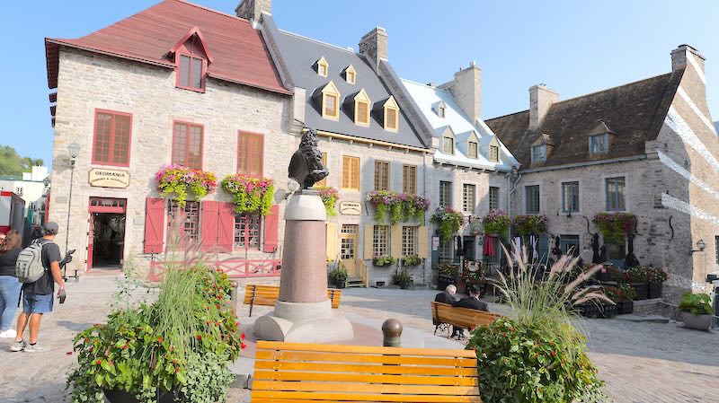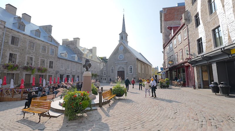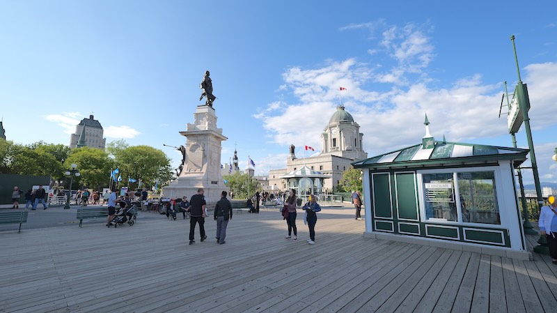 Place Royale: Dies ist der „Geburtsort der französischen Zivilisation“ in Nordamerika. Achte auf das riesige Wandgemälde Fresque des Québécois an der Seite eines Hauses – es erzählt die gesamte Stadtgeschichte auf 420 Quadratmetern.