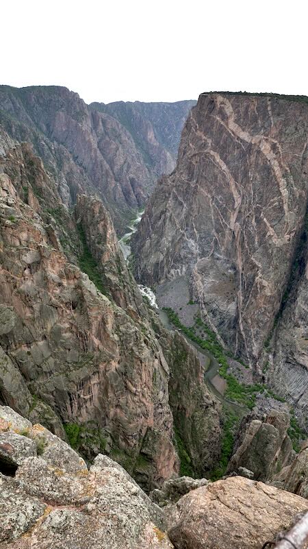 Vom Gunnison Point aus bekommst Du sofort einen überwältigenden Überblick über die Tiefe und Enge des Canyons. Er ist ideal, um sich zu orientieren, und bietet einen fantastischen Blick auf den Gunnison River unten.