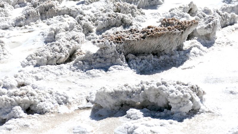 Es wird dringend davon abgeraten, die Salzpfanne zu betreten. Die Salzspitzen sind sehr scharf und es besteht die Gefahr, umzuknicken oder auszurutschen.
