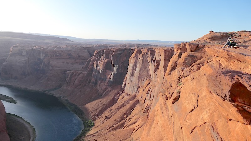 Die Sonne geht beim Blick auf den Horseshoe Bend hinter dir auf (im Osten). Dadurch werden die Felswände direkt beleuchtet und in warmes, goldenes Licht getaucht.