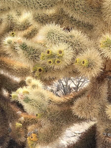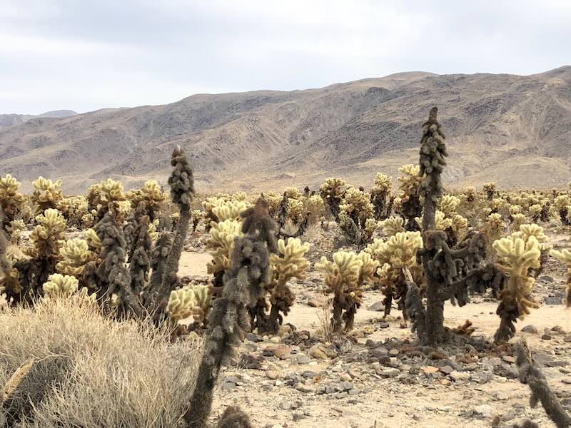 Cholla Cactus Garden: Ein unvergesslicher Ort im südlichen Teil der Colorado-Wüste, wo Tausende von „Teddybär“-Cholla-Kakteen dicht beieinander stehen – ein beeindruckender, aber vorsichtiger Spaziergang.