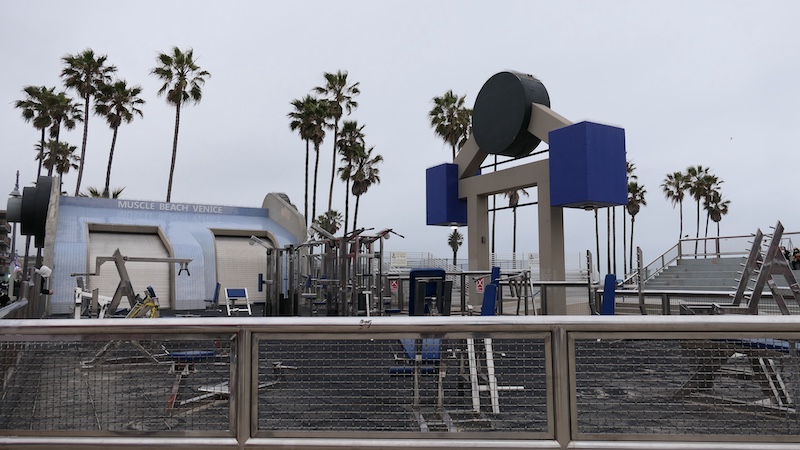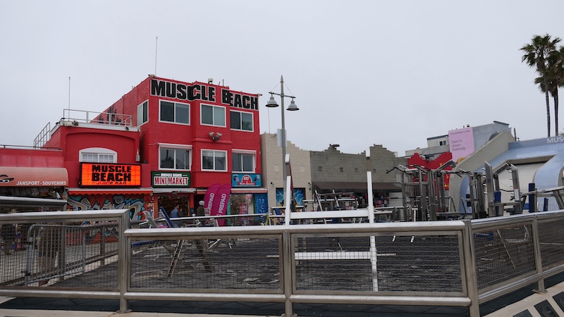 Muscle Beach: Dieser Outdoor-Fitnessbereich ist legendär und zieht Bodybuilder, Fitnessbegeisterte und Schaulustige an. Hier kann man den muskelbepackten Athleten beim Training zuschauen.