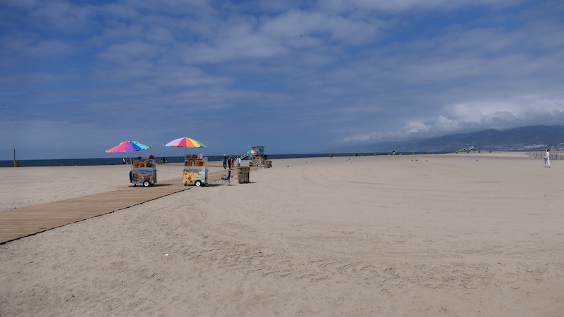 Der Strand: Der lange, breite Sandstrand ist das Herzstück von Venice Beach. Hier kann man sonnenbaden, spazieren gehen, Fahrrad fahren, Volleyball spielen oder einfach nur die Menschen beobachten.