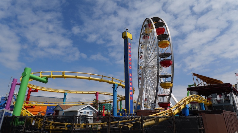 Vergnügungspark: Auf dem Pier befindet sich der Pacific Park, ein kleiner, aber charmanter Vergnügungspark mit klassischen Fahrgeschäften wie einem historischen Karussell und einer Achterbahn direkt am Meer.