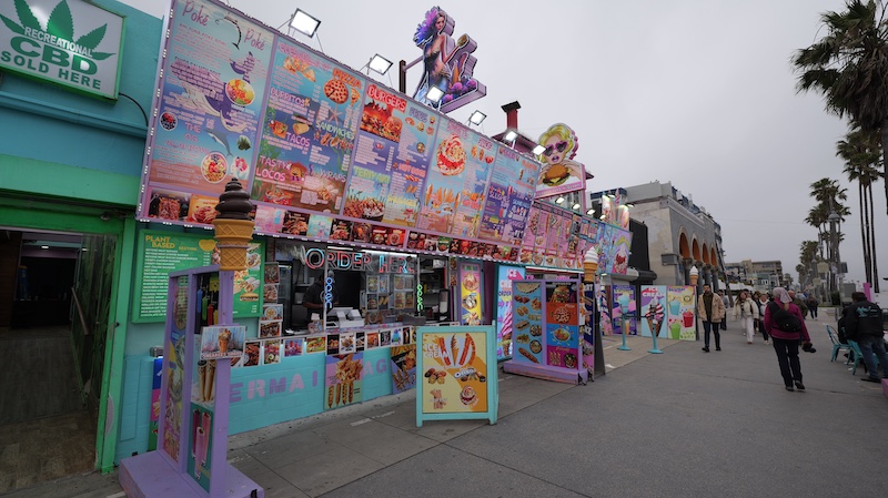 Venice Boardwalk: Die Strandpromenade ist ein bunter Mix aus Geschäften, Restaurants, Straßenkünstlern und Kuriositätenläden. Hier gibt es immer etwas zu entdecken.