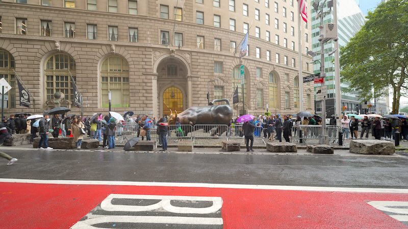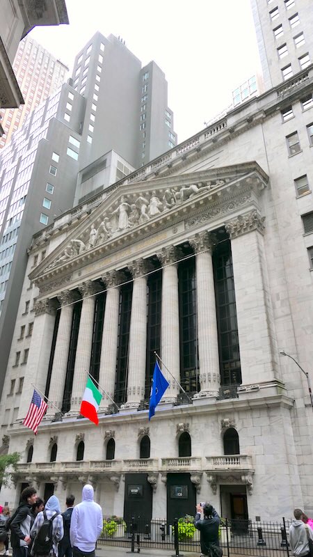 10:30 Uhr – Wall Street: Ein kurzer Spaziergang vorbei an der Börse zum Charging Bull. (Ein schnelles Foto gehört dazu, auch wenn es touristisch ist!)