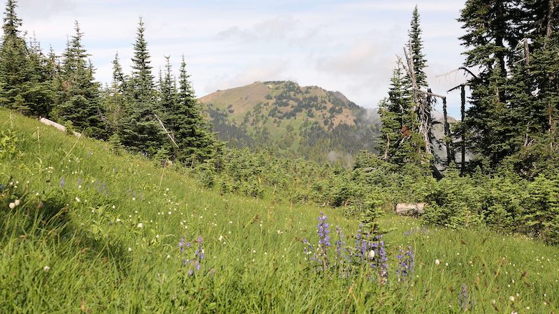 Die Hurricane Ridge ist der meistbesuchte Ort im Hochgebirge, da sie über eine gut ausgebaute Straße von Port Angeles aus leicht erreichbar ist. Schon die Fahrt nach oben bietet spektakuläre Ausblicke. Oben angekommen, führen befestigte Wege durch Wiesen, die im Juli und August in einem Meer aus Wildblumen (wie der geschützten Olympic-Glockenblume) versinken.