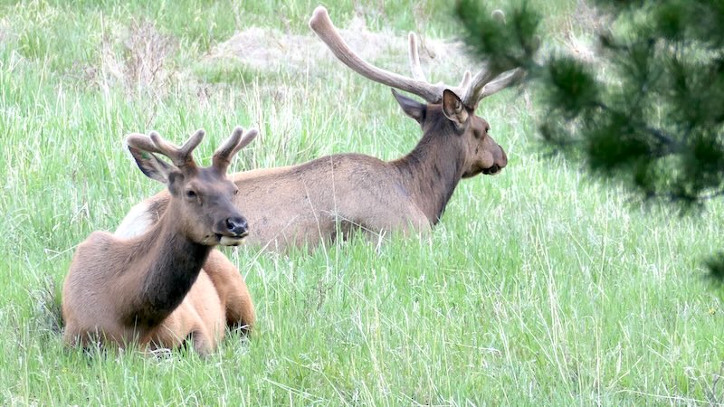 Elche (Wapitis): Besonders in den tiefer gelegenen Wiesen wie dem Kawuneeche Valley auf der Westseite stehen die Chancen extrem gut, riesige Bullen mit ihren Geweihen zu sehen.