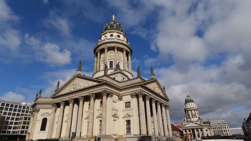 12:30 Uhr – Gendarmenmarkt & Mittagspause: Der Gendarmenmarkt gilt als der schönste Platz Berlins. In den Seitenstraßen findest du alles von der schnellen Currywurst bis zu gemütlichen Cafés. Wenn du es eilig hast, schnapp dir einen Döner oder eine Currywurst auf die Hand.
