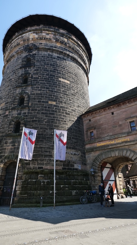 Gegenüber vom Bahnhof liegt der innerhalb der Stadtmauer der Handwerkerhof im ehemaligen Waffenhof. Hier werden vergangene Zeiten lebendig. Hier findet ihr zahlreiche Handwerker in ihren Geschäften, u.a. einen Blechspielzeugladen, eine Töpferei, eine Zinngießerei, ein Lederwarengeschäft und natürlich auch Nürnberger Lebkuchen. Für Speis und Trank ist ebenfalls bestens gesorgt.