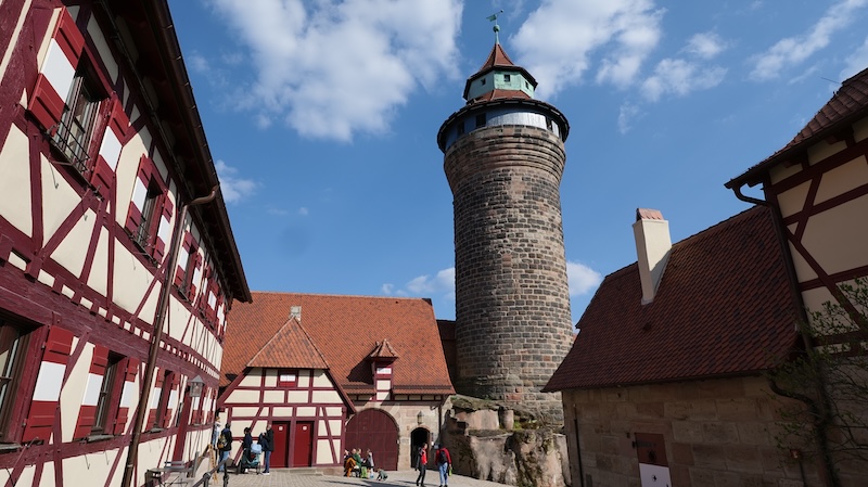 Überragt wird die Altstadt von der Kaiserburg, die majestätisch auf einem Sandsteinfelsen über der Altstadt thront. Man kann die Kaiserburg von der Altstadt aus bequem zu Fuß erreichen kann. Von oben aus hat man einen herrlichen Rundblick über Nürnberg und die angrenzenden Landschaften.