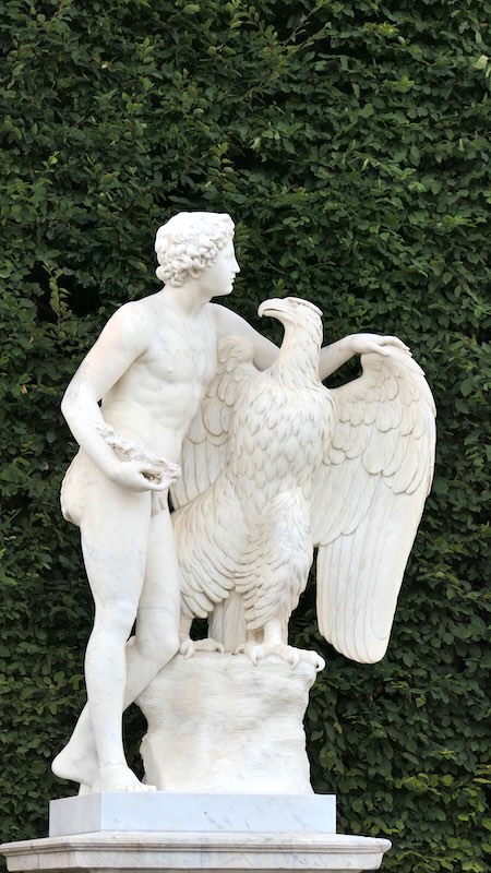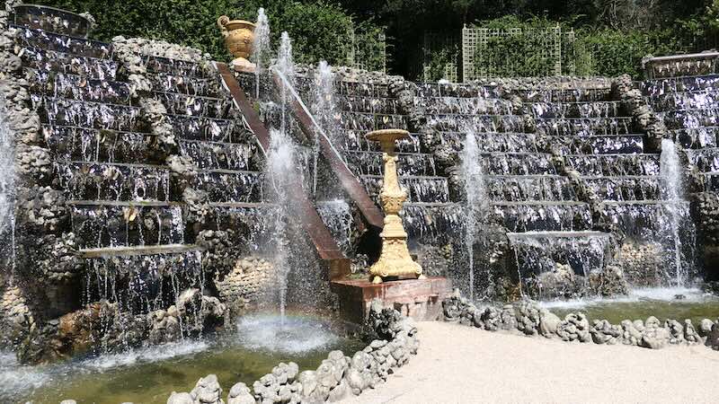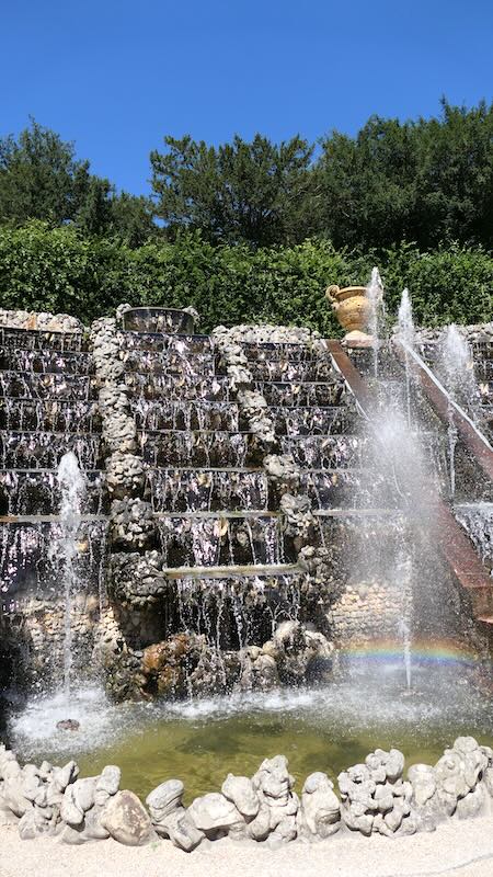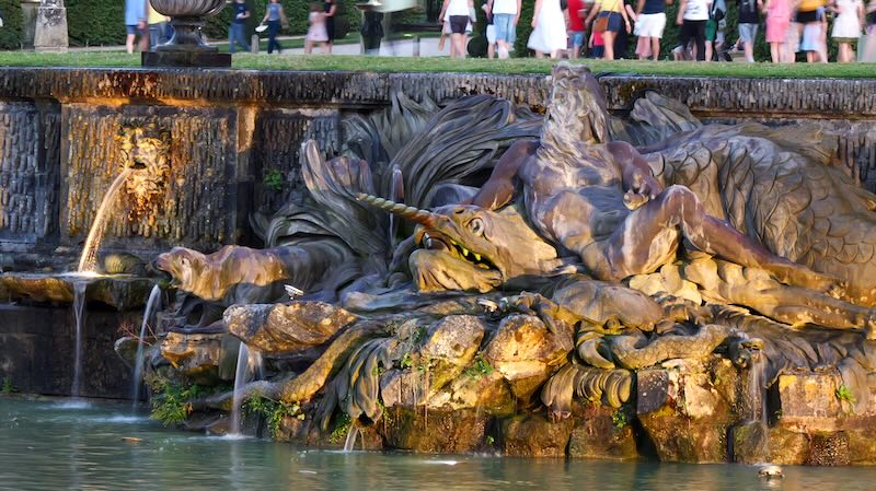 Zahlreiche Brunnen und Statuen in den Gärten.