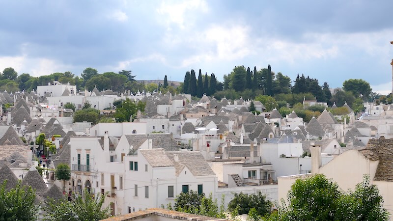 Nur eine kurze Autofahrt entfernt liegt Alberobello, das für seine berühmten Trulli-Häuser bekannt ist. Diese weißen, kegelförmigen Gebäude sind UNESCO-Weltkulturerbe und ein absolutes Muss für jeden Apulien-Besucher.