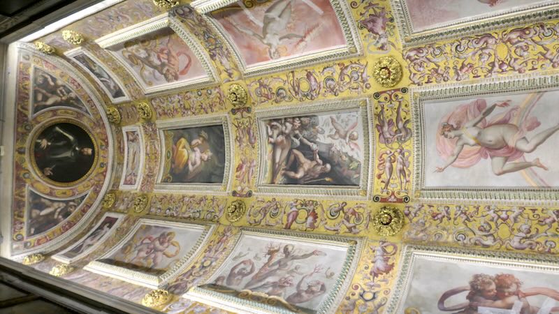 Ein weiteres Highlight des Palastes ist das Quartiere di Eleonora, das private Apartments der Eleonora von Toledo, der Frau von Cosimo I. de‘ Medici, beherbergt. Diese Räume sind reich verziert und zeigen das luxuriöse Leben der Medici-Familie. Besonders der Studiolo von Francesco I. ist ein kleiner, aber kunstvoll gestalteter Raum mit versteckten Schränken und wertvollen Kunstwerken.