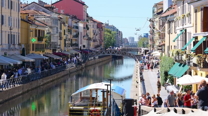 Insbesondere in den Abendstunden wird Navigli zum Hotspot der Mailänder „Movida“. Viele Bars bieten zum Getränk ein reichhaltiges Buffet an, das zum beliebten Aperitivo einlädt. Die Uferpromenaden sind dann voller Menschen, die das lebhafte Treiben genießen.