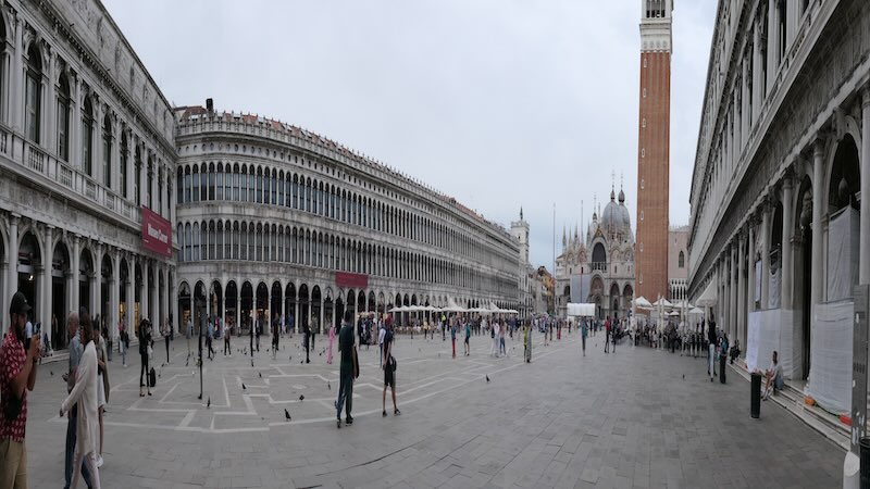 Der Markusplatz ist mit 175 Metern Länge und bis zu 82 Metern Breite der größte Platz Venedigs und der einzige, der den Titel „Piazza“ trägt. Alle anderen Plätze werden „campi“ genannt.