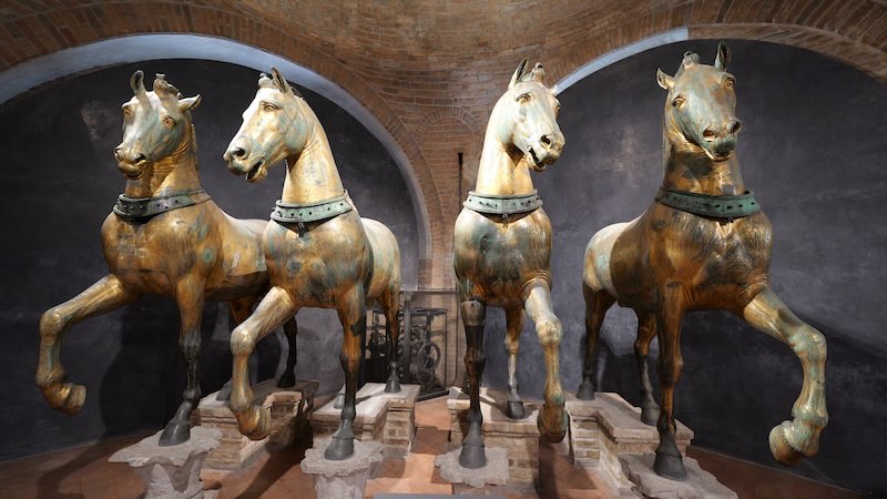 Die vier bronzenen Pferde, die einst den Triumphbogen des römischen Kaisers Nero schmückten, symbolisieren die Macht und den Reichtum Venedigs.