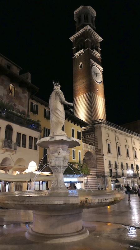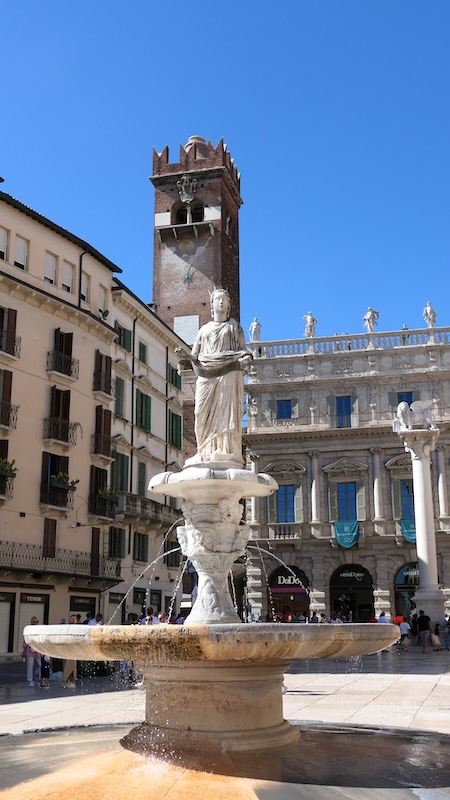 Mitten auf dem Platz steht der Fontana di Madonna Verona, ein Brunnen aus dem 14. Jahrhundert, dessen Skulptur der Madonna das älteste Denkmal Veronas ist. Sie wurde aus einem römischen Original aus dem Jahr 380 n. Chr. gefertigt.