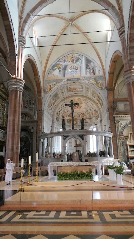 Zahlreiche Fresken und Gemälde, die von Veroneser Künstlern wie Francesco Torbido stammen, schmücken das Innere und zeigen die reiche künstlerische Tradition der Stadt.