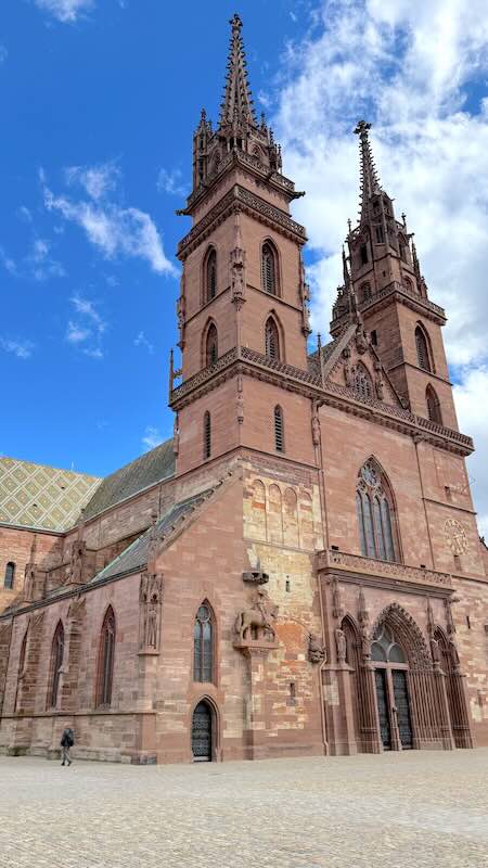 Das Wahrzeichen aus rotem Sandstein ist ein beeindruckendes Beispiel gotischer Architektur. Es entstand im Laufe mehrerer Jahrhunderte und trägt Spuren verschiedener architektonischer Stile. Ursprünglich in der frühen Romanik begonnen, erhielt es im 15. Jahrhundert seine markanten gotischen Elemente, die bis heute den Charakter des Gebäudes prägen. Besonders beeindruckend ist die Aussicht von den Türmen. Von dort oben genießt man einen Panoramablick über Basel und den Rhein bis in den Schwarzwald.
