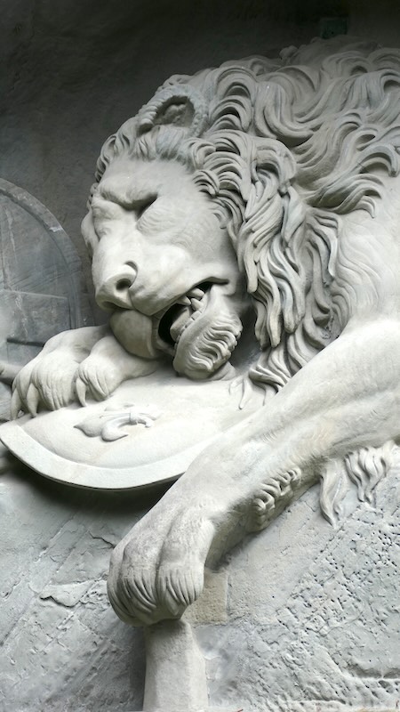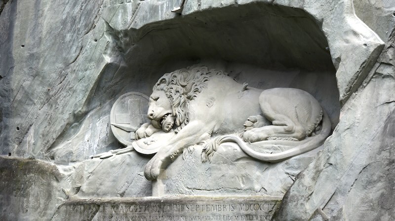 Ein weiteres bewegendes Denkmal der Stadt ist das Löwendenkmal. Das monumentale Kunstwerk, in eine Felswand gehauen, erinnert an die Schweizer Gardisten, die während der Französischen Revolution 1792 im Dienst des französischen Königs starben.