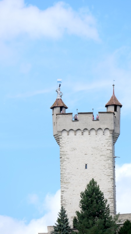 Ein Teil der Mauer ist für Besucher zugänglich. Ein Spaziergang auf dem Wehrgang bietet spektakuläre Ausblicke auf die Luzerner Altstadt, den Vierwaldstättersee und die umliegenden Berge.